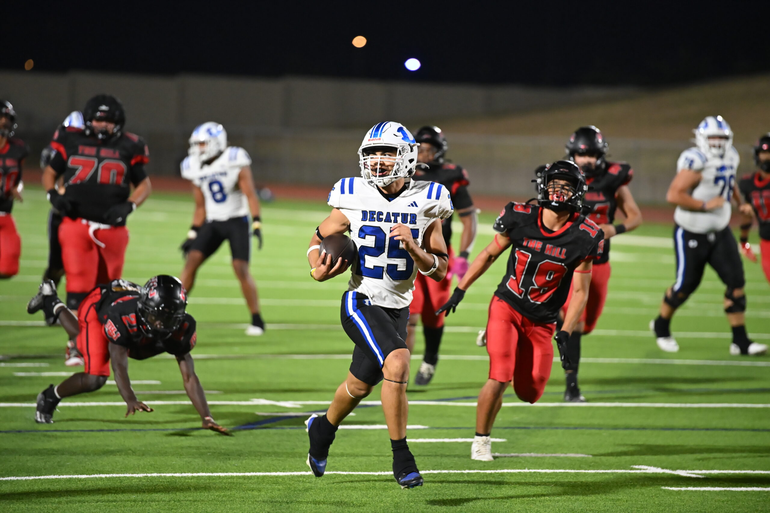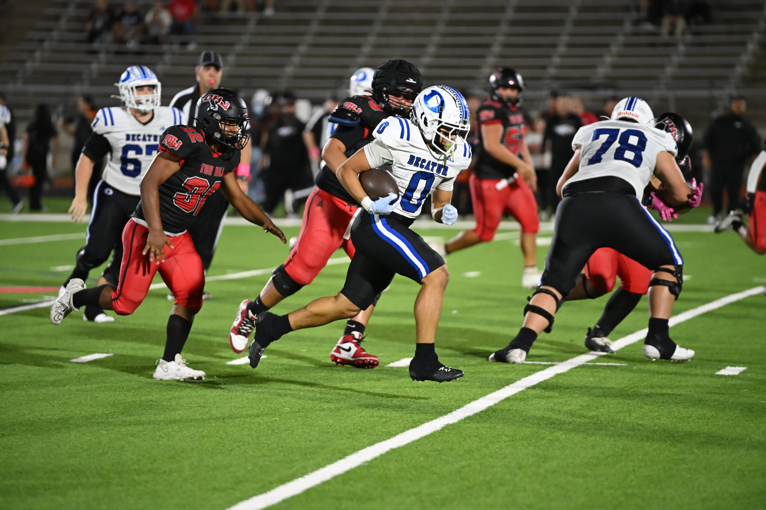 Decatur’s defense also played a big part in the victory, amassing three interceptions by defensive backs Elijah Molina and Ryder Holmes and linebacker Keaton Goode. Holmes returned his pick for a 30-yard score.