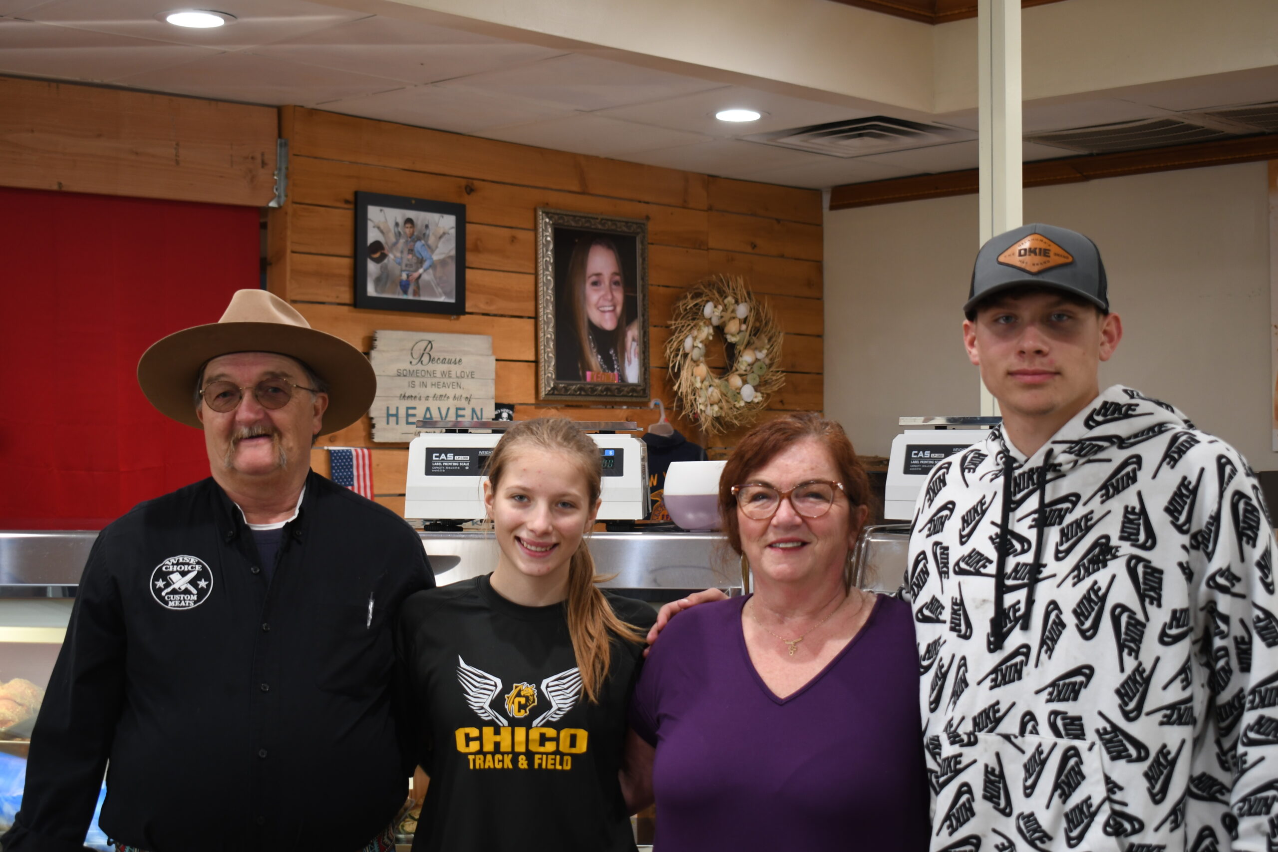 The Crawford family is preparing for the 6th Keona’s Thanks-Giving Day, in honor of Keona Crawford. Pictured in 2023 are Lynn Crawford, Shaylee Crawford, Patricia Crawford and Caleb Crawford. The family, who owns Wise Choice Custom Meats, will provide free meals for those in need Thanksgiving Day from 10 a.m.-1 p.m. FILE | WCMESSENGER