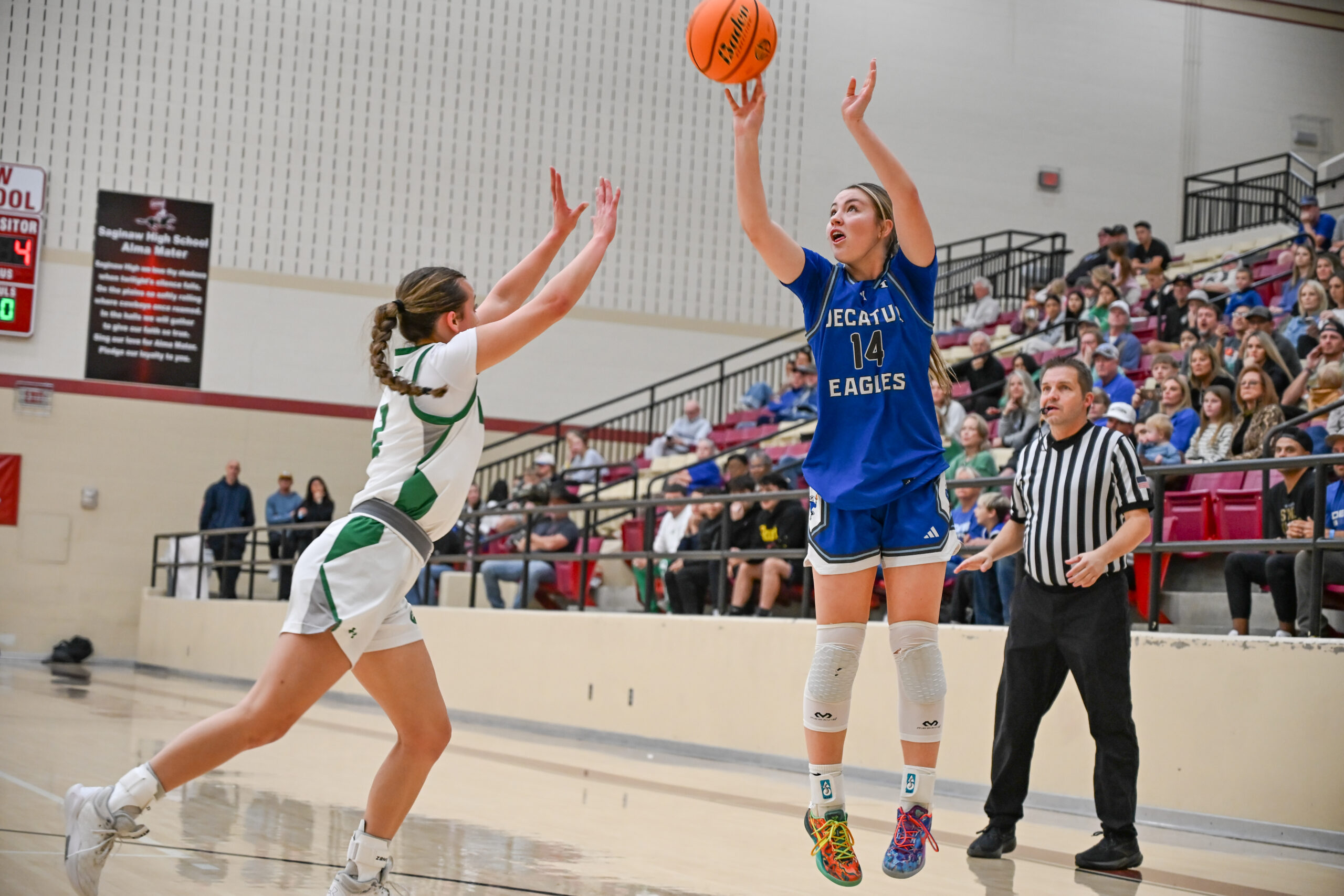 Holding a 4-point halftime lead after a defensive bout in the opening 16 minutes, the Lady Eagles’ offense came to life in the second half and sparked a 27-16 run to defeat Wall 40-25 at Saginaw High School, allowing Decatur to finish atop the competitive royal bracket for the second straight season.