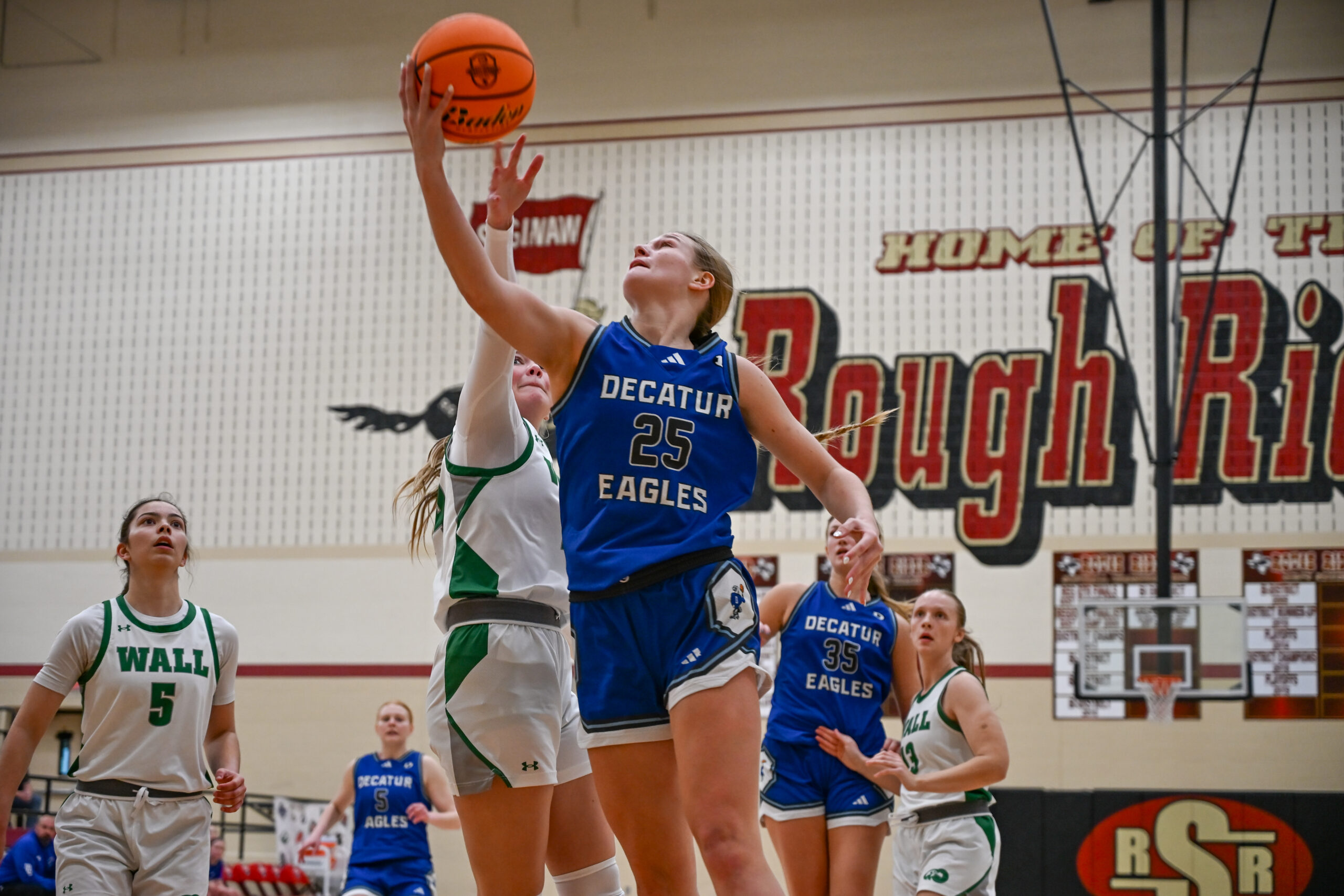 After a scoring drought of more than 4 minutes, Wall (21-3) trimmed the deficit to 1 after a field goal by Jewels Johnson and a Emery Harper 1-for-2 opportunity at the free throw line. Bralyn Peck and the Lady Hawks’ Kenzzie Covert traded field goals in the final minutes of the opening frame, as Decatur held a 6-5 advantage.