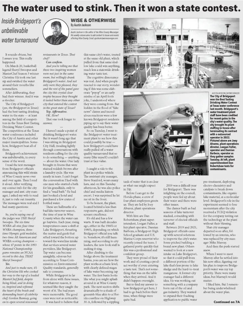 The Wise County Messenger was named the top newspaper in its category at the North and East Texas Press Association’s annual convention last weekend in Pilot Point, taking home Sweepstakes with 10 first-place awards in the journalism contest.