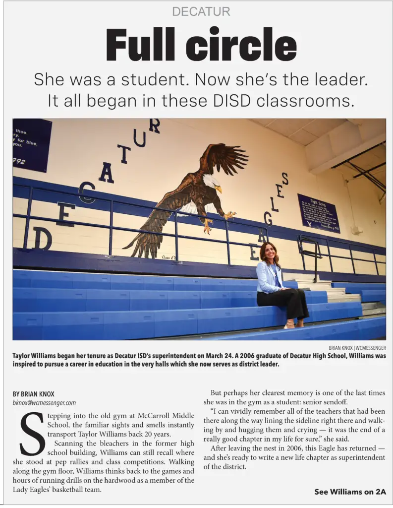 Jackson’s story on criminal interdiction (“Highway hunt”) and Messenger special projects manager Brian Knox’s feature on Decatur ISD superintendent Taylor Williams (“Full circle”) helped the Messenger take first in feature writing.