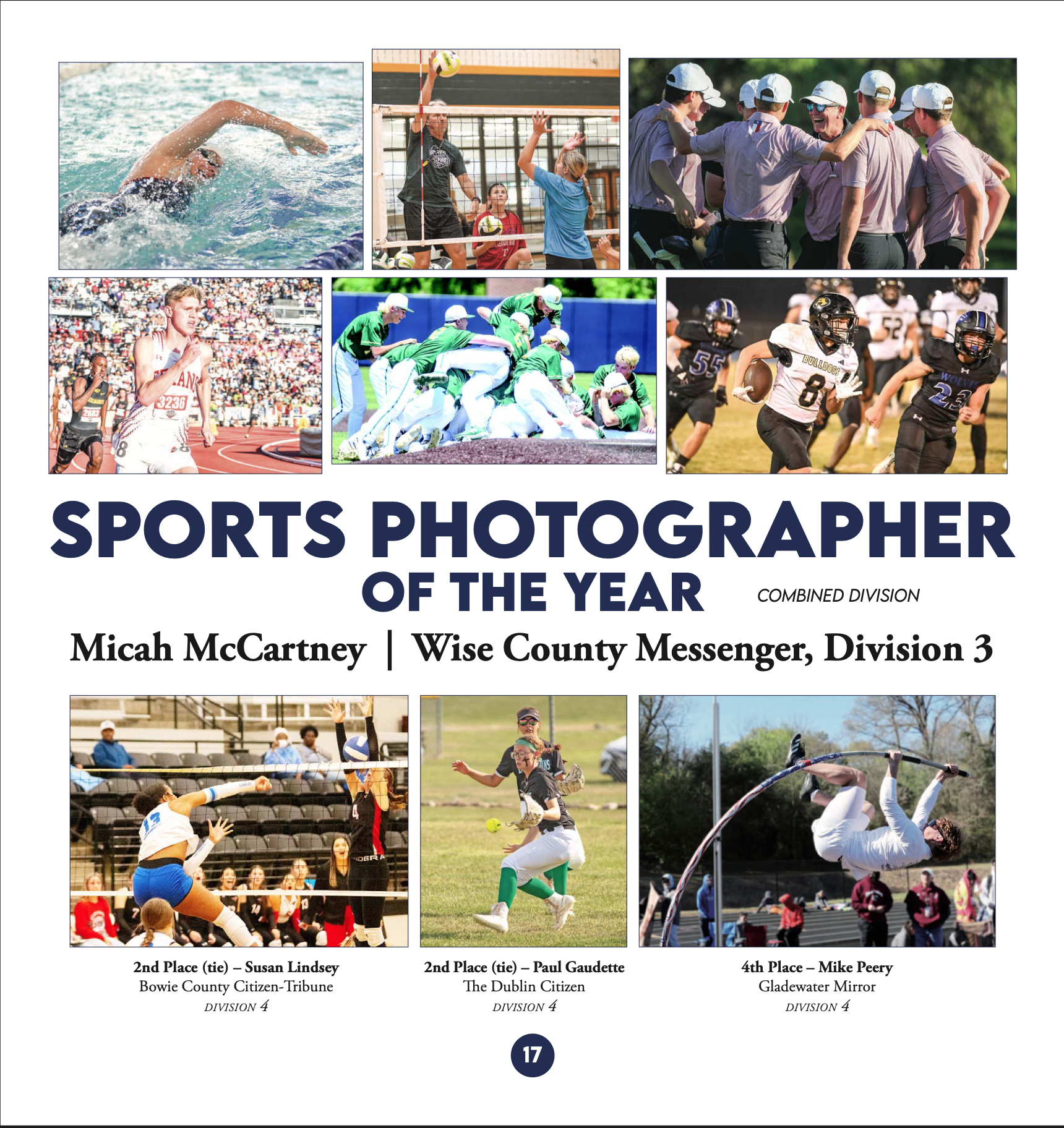 Messenger sports editor Micah McCartney was named NETPA’s Sports Photographer of the Year, beating competitors across all divisions with action and celebration shots that spanned swimming, Bridgeport’s state championship golf victory, a local track phenom, baseball, volleyball and football.