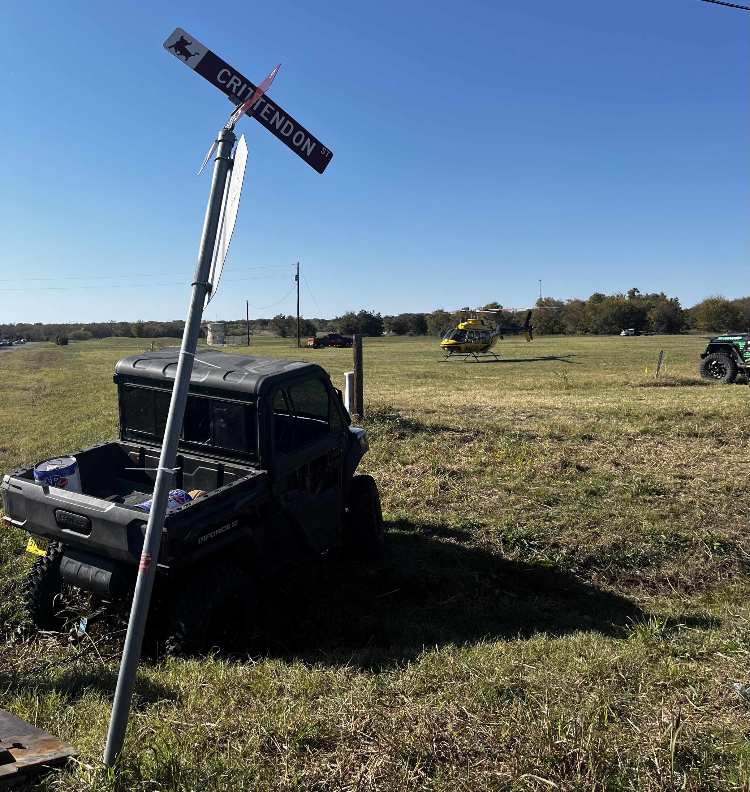 Two juvenile patients were flown to a Fort Worth hospital after a wreck that involved a UTV and a pickup truck in Bridgeport. COURTESY | BRIDGEPORT PD