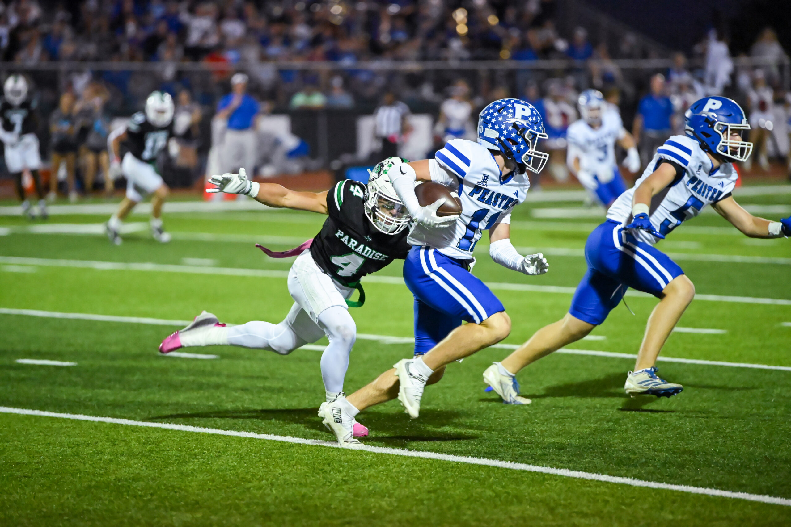 “Our defense just loves being on the field. It doesn’t matter where the ball is — the other team could have first-and-goal from the 1 — because our guys will always believe they can get a stop,” Paradise coach Tommy Koch said. “When we were down in the fourth quarter, I told them we were going to score and it would come down to the defense. We weren’t going to play conservative — we wanted to make [Peaster] work for every single yard.”