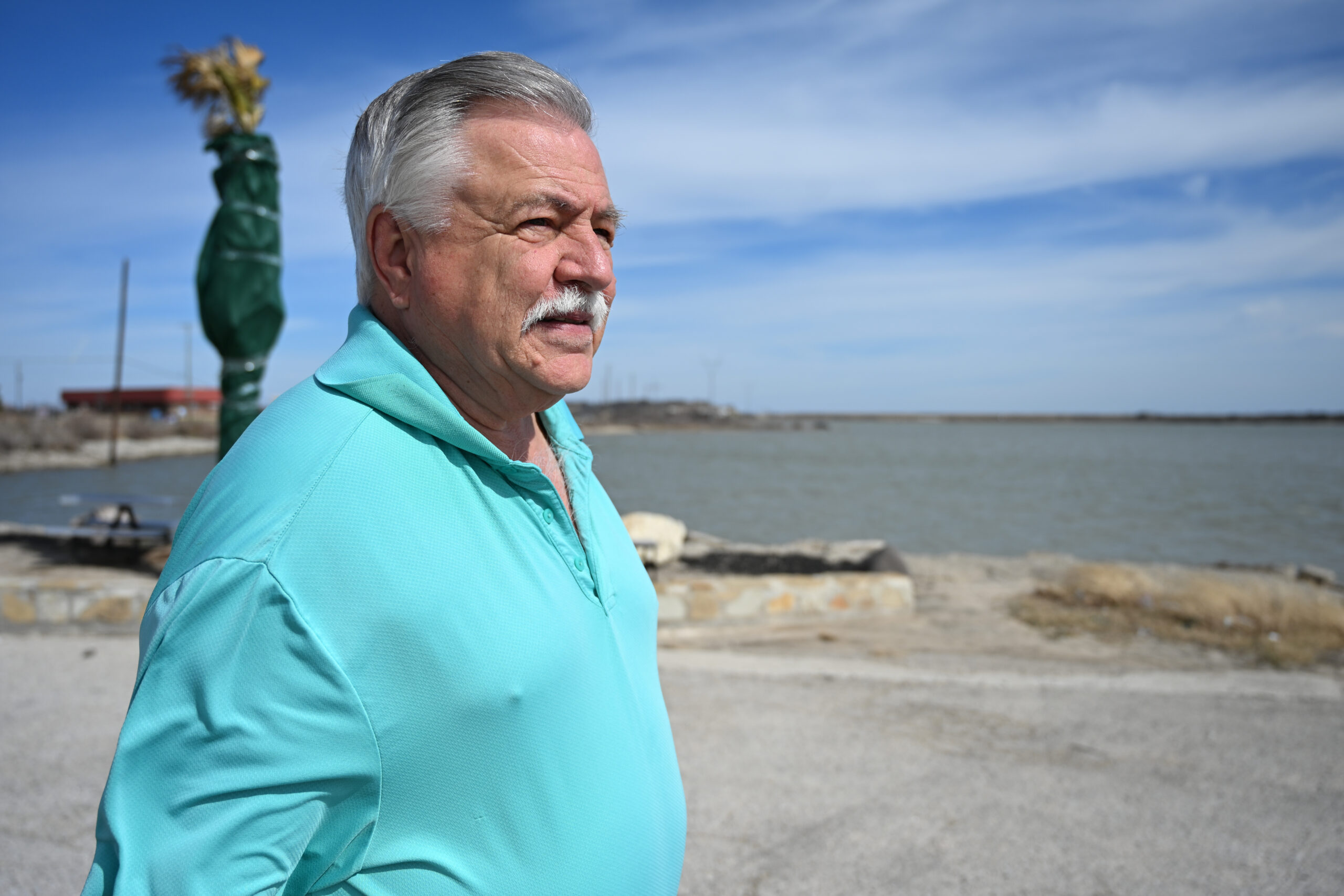 Runaway Bay Mayor Herman White looks out at the lake in the days after a rain event that led to a wastewater spill that reached Lake Bridgeport. The sewer issue is a political lightning rod in the city and in the mayor’s race as White faces a challenge from candidate Sam Berry in the May election. AUSTIN JACKSON | WCMESSENGER