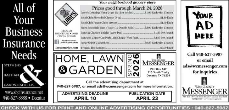 BOND INFORMATION SESSIONS — DISD Superintendent Taylor Williams will host a “Coffee Chats” to provide information about the bond package at Trinity Street Coffee Bar on the Decatur Square 7 to 8:30 a.m. April 7. The district is also offering student-led tours of McCarroll Middle School 10:30 to 11:30 a.m. March 31. For more bond information, visit decaturisdbond.com.