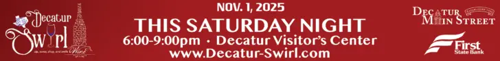 DECATUR SWIRL — Decatur Swirl is 6 to 9 p.m. Saturday in Downtown Decatur. The annual event features wine, food, music and shopping. Tickets are available at decatur-swirl.com.