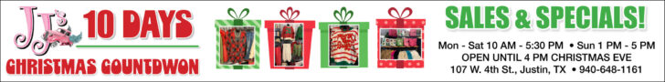 STORYTIME WITH SANTA AND MRS. CLAUS — Rhome Community Library will host Storytime with Santa & Mrs. Claus 10:30 a.m. Wednesday. Hear a story read by Santa, decorate cookies and enjoy hot chocolate, games, crafts and more. Wear your craziest Christmas sweater. Call 817-636-2767.