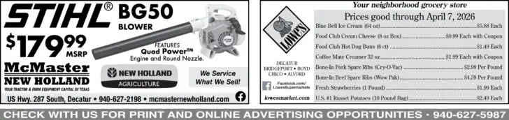 BOYS STATE POWERLIFTING RESULTS — Paradise’s Beau Chenevert led Wise County’s lifters competing at the Texas High School Powerlifting Association state meet March 27 at Abilene’s Taylor County Expo Center, lifting 1,575 pounds to place third in the 181 class. Boyd’s Brecken Gilley also competed at the Division 3 state meet, turning in a fifth-place performance in the 308 class with 1,770 pounds. Chico’s Karrington Ransom competed in the 308 class at the Division 4 state meet, lifting 1,700 pounds to finish fourth. Alvord’s top lifters were Carlos Hernandez (905 pounds) and Davis Kwasny (1,620 pounds), placing sixth in the 114 and 275 classes, respectively. Decatur brought back three medals from the Division 2 state meet. Israel Rueda (1,750 pounds) and Joe Finley (1,700 pounds) topped Decatur’s sheet, securing fourth-place medals in the 242 and 275 classes, respectively, while Caden Merrett lifted 1,685 pounds for fifth in the 275 class. Read more online here.