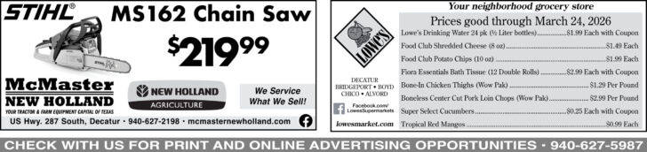 MEALS ON WHEELS GALA — The Wise County Committee on Aging’s Meals on Wheels Wise County Gala and Auction 2026 will be held 6 p.m. March 27 at the Decatur Conference Center. The theme for this year is “The Gilded Age: Dine – Donate – Do Good.” Gilded Age attire optional. Festivities include silent and live auction, raffle, entertainment and open bar. Raffle tickets for the “Grand Raffle” are now available. Only 300 tickets will be sold. For tables or individual tickets go to wisemeals.org. Call 817-899-8529. Proceeds will help Wise County seniors.