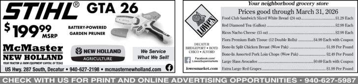 SHERIFF’S OFFICE TO PURCHASE ARMORED VEHICLE — County commissioners approved the purchase of a $324,000 armored vehicle for the Wise County Sheriff’s Office Monday, acquiring the first law enforcement vehicle of its kind in the county. The vehicle is intended to improve response to high-risk calls without relying on out-of-county agencies. Wise County Sheriff Cary Mellema said it may also deter conflict before it escalates. “You watch this monster pull up in the front yard, your hands are probably going up in the air,” Mellema said. Built on a Ford F-550 chassis, the Terradyne Armored Vehicles Gurkha MPV (multi-purpose vehicle) is an armored tactical vehicle designed for law enforcement, military and rescue operations, according to the manufacturer. The company said it provides ballistic protection and is designed to shield occupants from high-powered rifles and certain explosive threats. Read more online here.