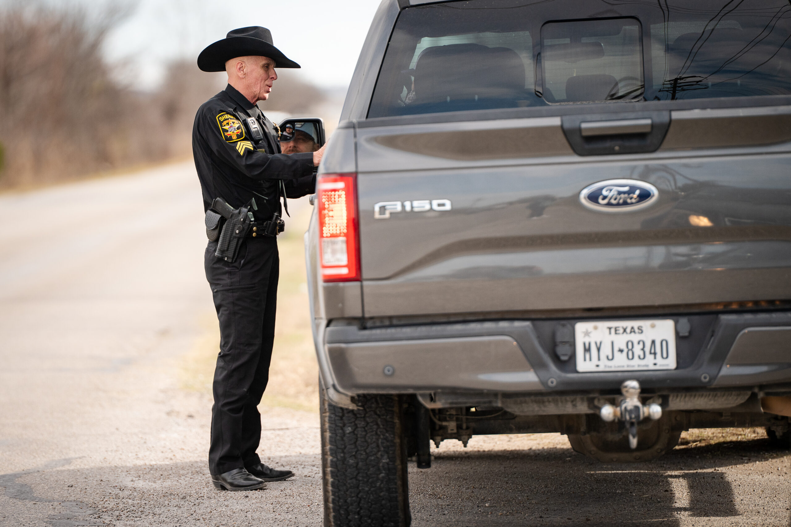 WCSO Sgt. Cavin Riggs speaks with dispatch after conducting a stop on County Road 4668 Tuesday near Boyd. AUSTIN JACKSON | WCMESSENGER